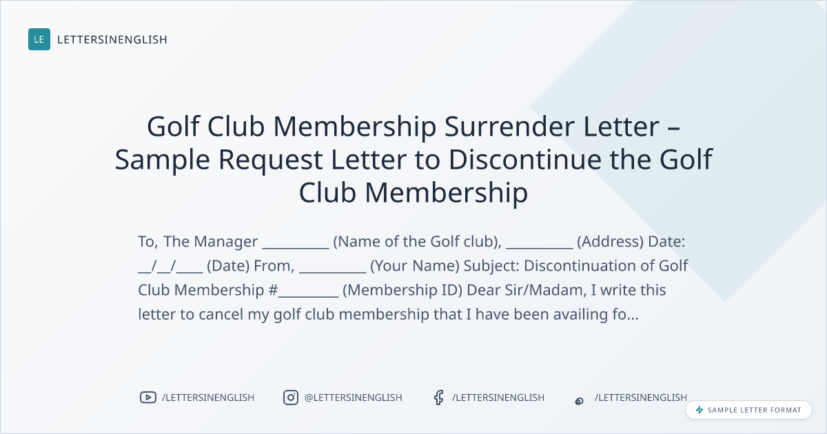 Golf Club Membership Surrender Letter – Sample Request Letter to Discontinue the Golf Club Membership