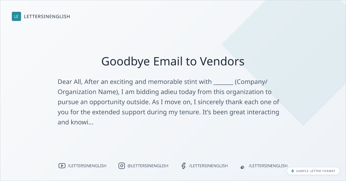 Writing a goodbye email to vendors requires clarity and politeness. It's essential to express gratitude for their support, mention the reason for departure, and provide contact information for future communication. Avoid unclear language and ensure all necessary details are included to maintain professionalism.