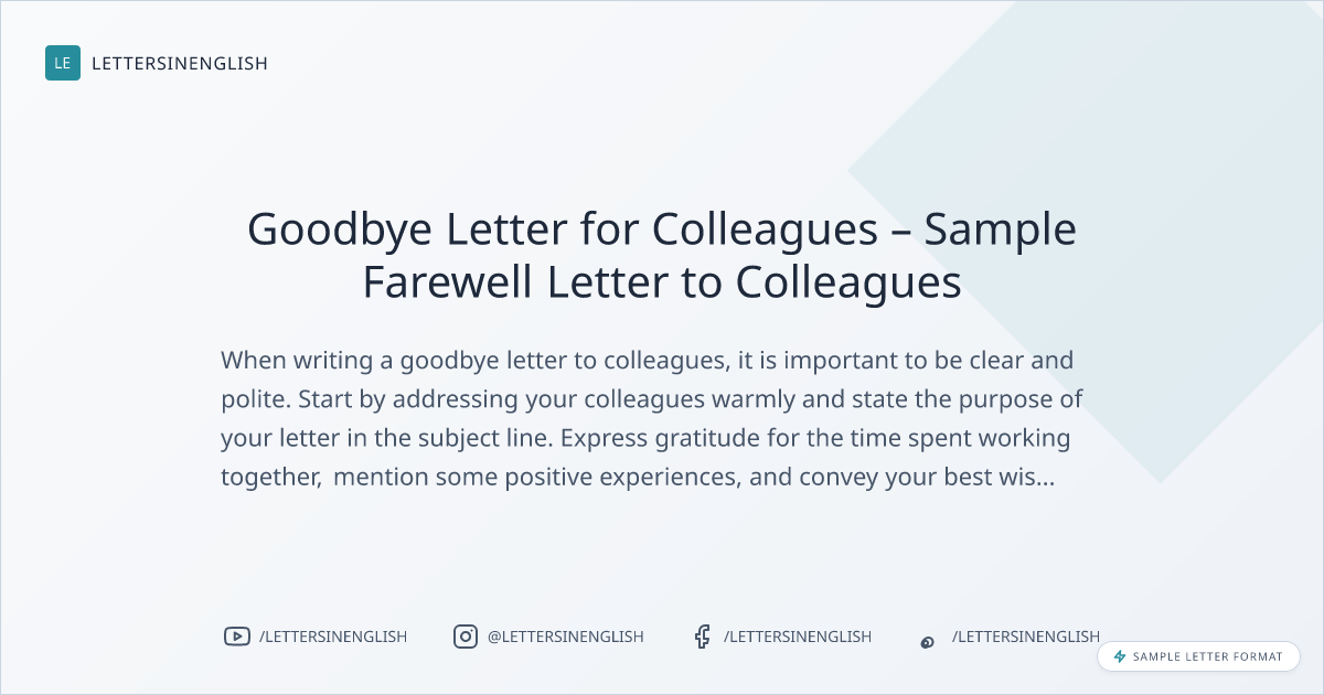 Goodbye Letter for Colleagues – Sample Farewell Letter to Colleagues