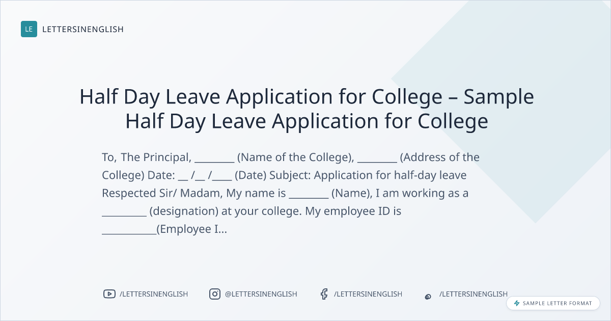 Half Day Leave Application for College – Sample Half Day Leave Application for College