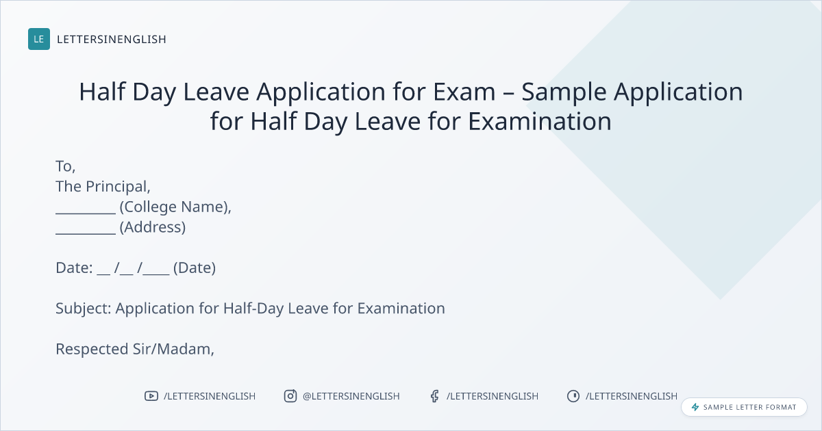 Half Day Leave Application for Exam – Sample Application for Half Day Leave for Examination