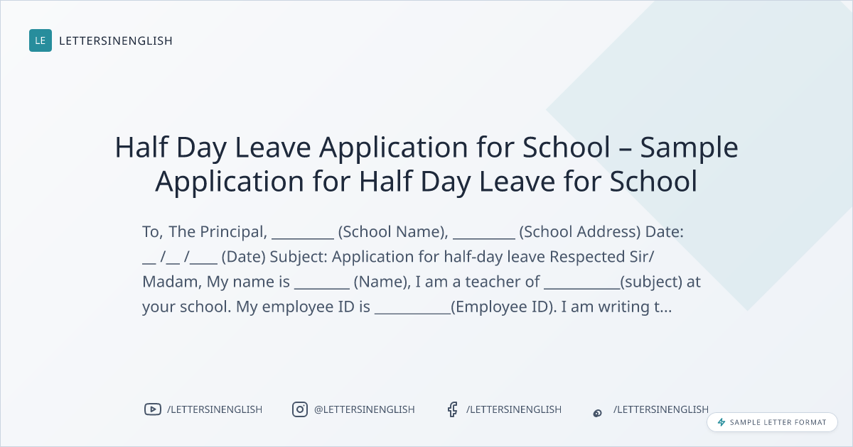 Sample Letter for Half Day Leave for School