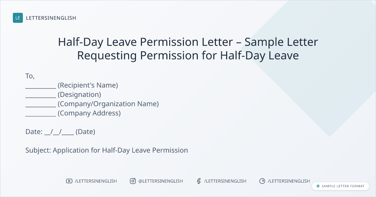 Half-Day Leave Permission Letter – Sample Letter Requesting Permission for Half-Day Leave