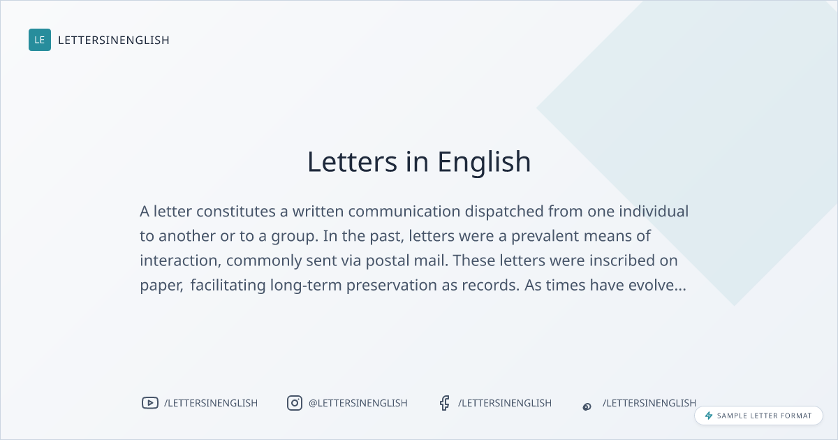A letter constitutes a written communication dispatched from one individual to another or to a group. In the past, letters were a prevalent means of interaction, commonly sent via postal mail. These letters were inscribed on paper, facilitating long-term preservation as records. As times have evolved, the landscape of written communication has transformed, ushering in the era of emails, text messages, and various digital mediums. Nevertheless, the practice of letter writing retains its significance, bearing an intimate touch capable of conveying sentiments and emotions.