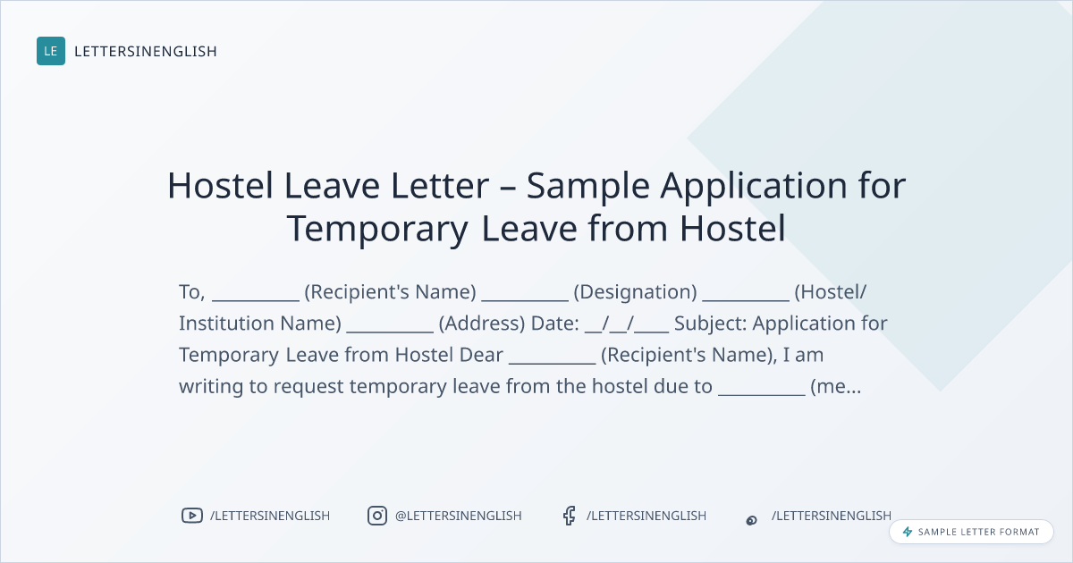 Hostel Leave Letter – Sample Application for Temporary Leave from Hostel