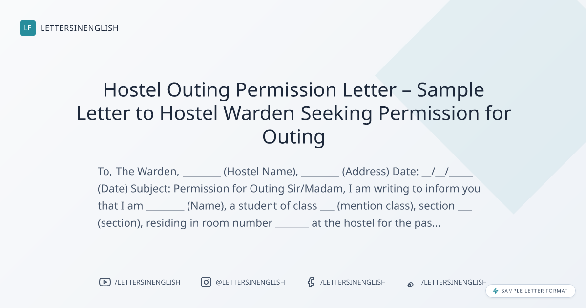 Hostel Outing Permission Letter – Sample Letter to Hostel Warden Seeking Permission for Outing