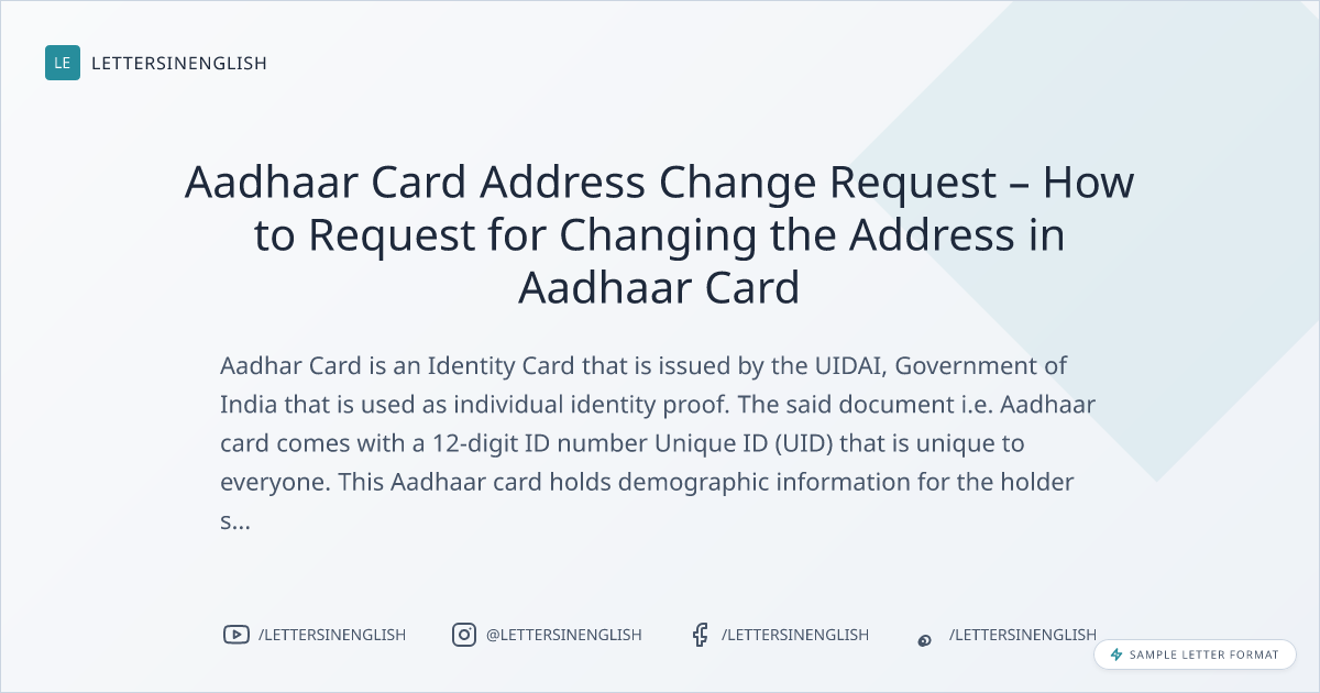 - Moreover, in case you already requested for updating your Aadhaar Card but the same has not been done and need a letter to follow up with the request that was made by you, you may click on the link provided.