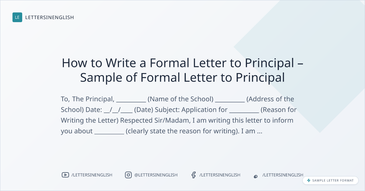How to Write a Formal Letter to Principal – Sample of Formal Letter to Principal