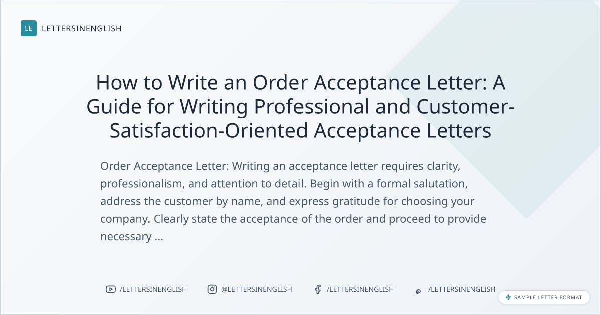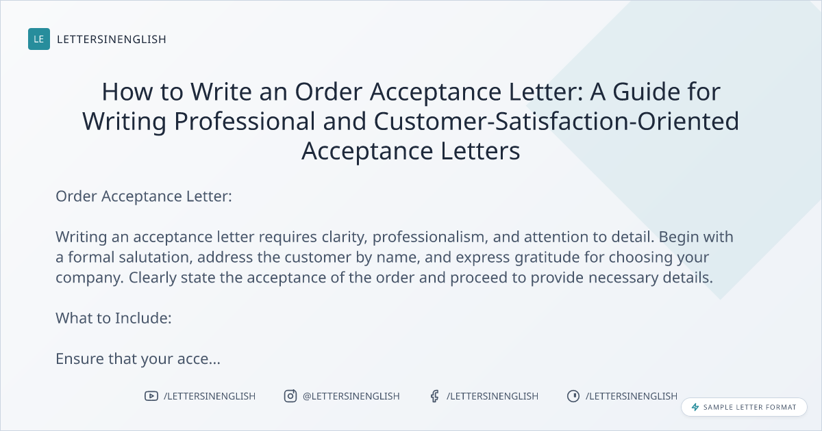 How to Write an Order Acceptance Letter: A Guide for Writing Professional and Customer-Satisfaction-Oriented Acceptance Letters