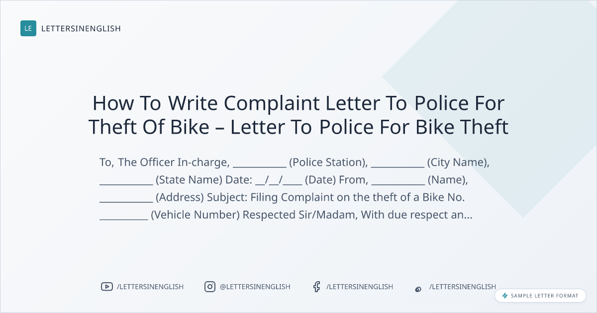 How To Write Complaint Letter To Police For Theft Of Bike – Letter To Police For Bike Theft