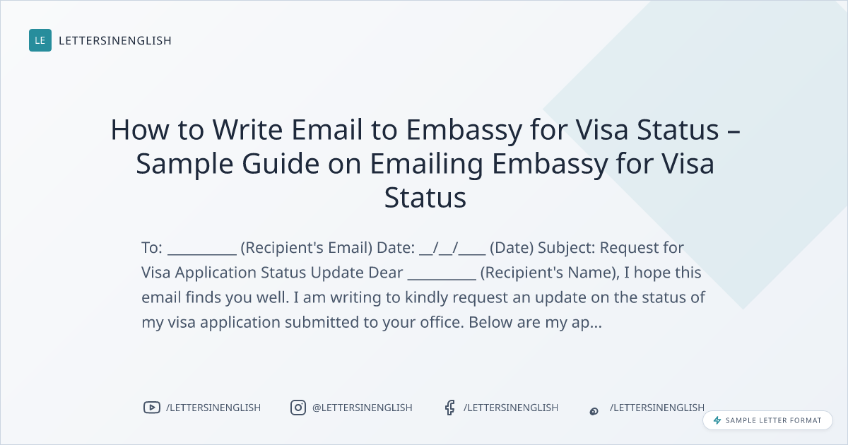 Visa Status Inquiry Email to Embassy – Sample Email for Checking Visa Application Status
