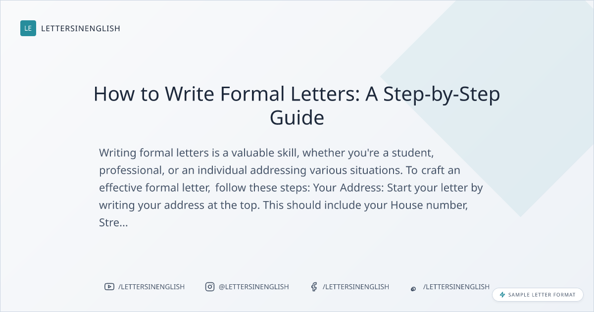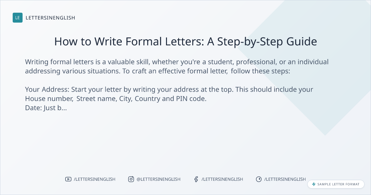 Writing formal letters is a valuable skill, whether you’re a student, professional, or an individual addressing various situations. To craft an effective formal letter, follow these steps:
