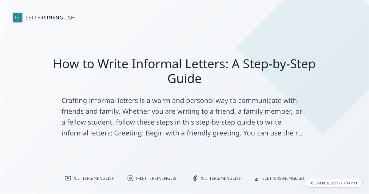 Informal letters are a wonderful way to stay connected with loved ones and share your thoughts and experiences. This step-by-step guide will help you create heartfelt and personal letters for your friends and family.