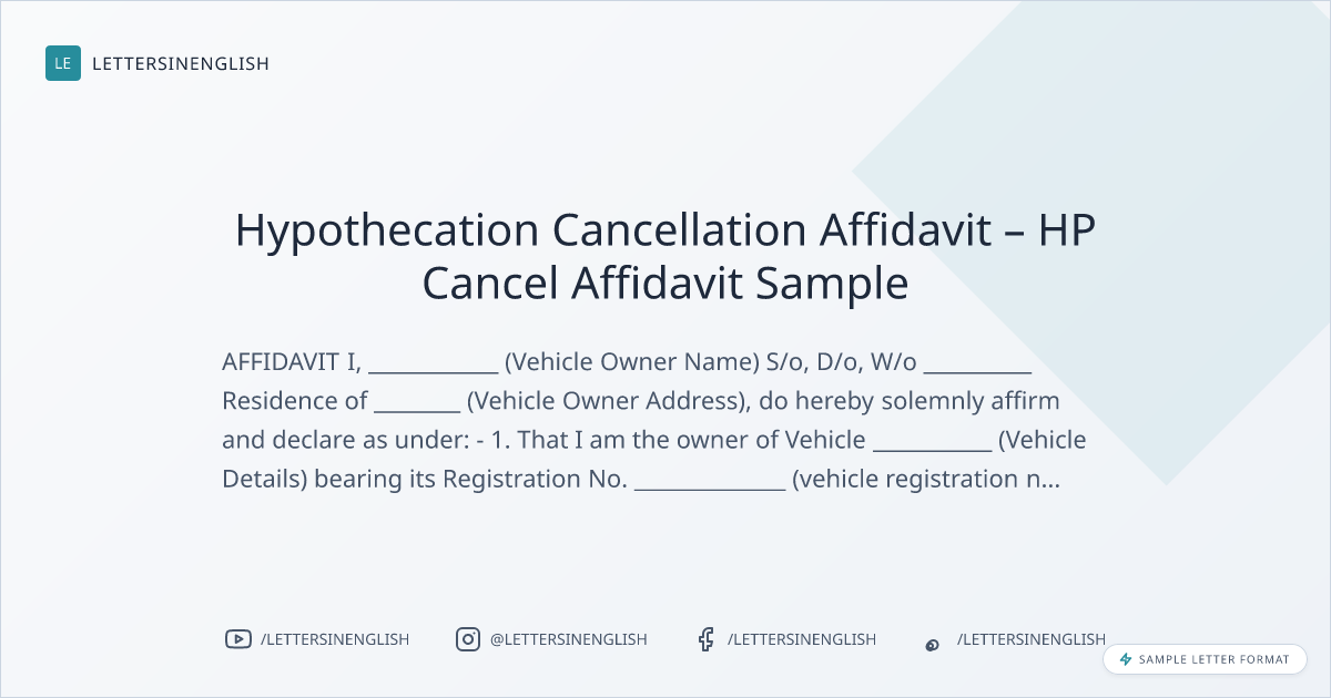 Hypothecation Cancellation Affidavit – HP Cancel Affidavit Sample