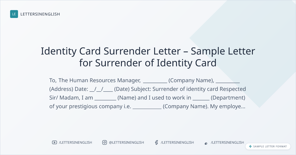 Identity Card Surrender Letter – Sample Letter for Surrender of Identity Card