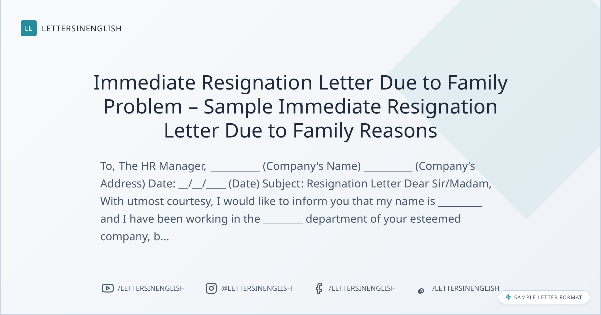 Immediate Resignation Letter Due to Family Problem – Sample Immediate Resignation Letter Due to Family Reasons