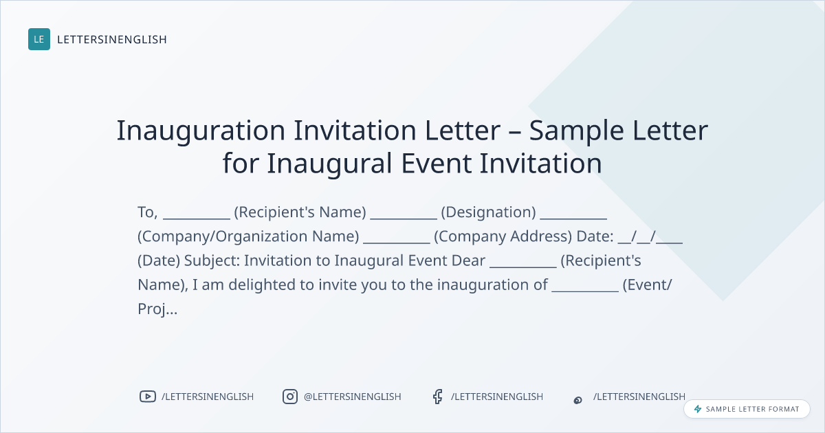 Inauguration Invitation Letter – Sample Letter for Inaugural Event Invitation