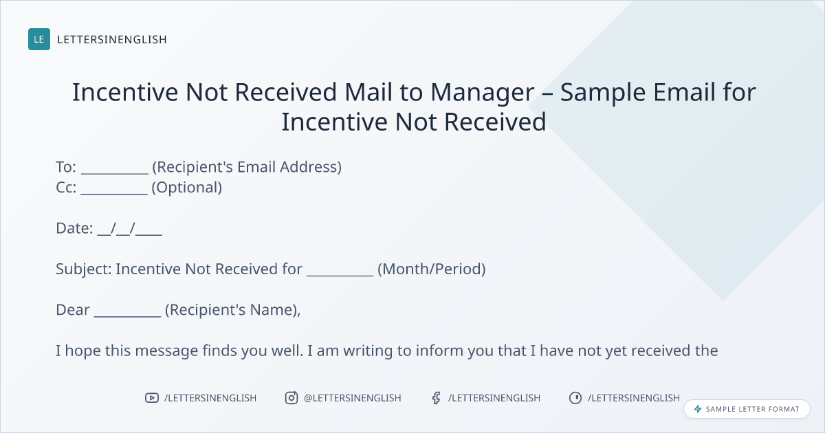 Email to Manager for Incentive Not Received – Sample Professional Email