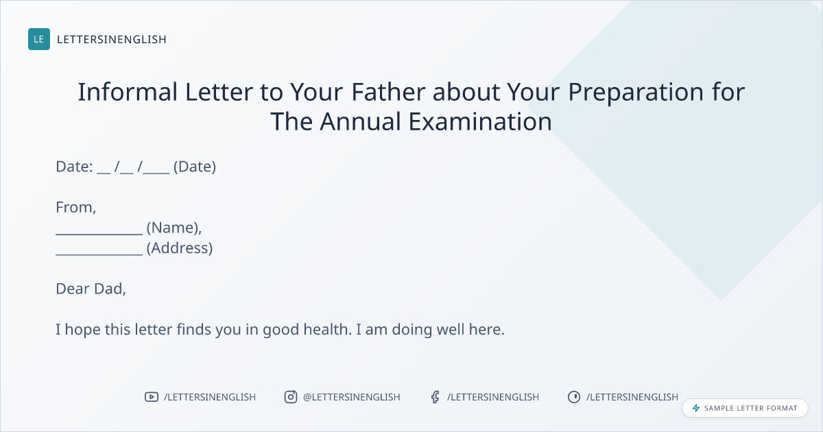 Sample Letter to Your Father about Your Preparation for The Annual Examination