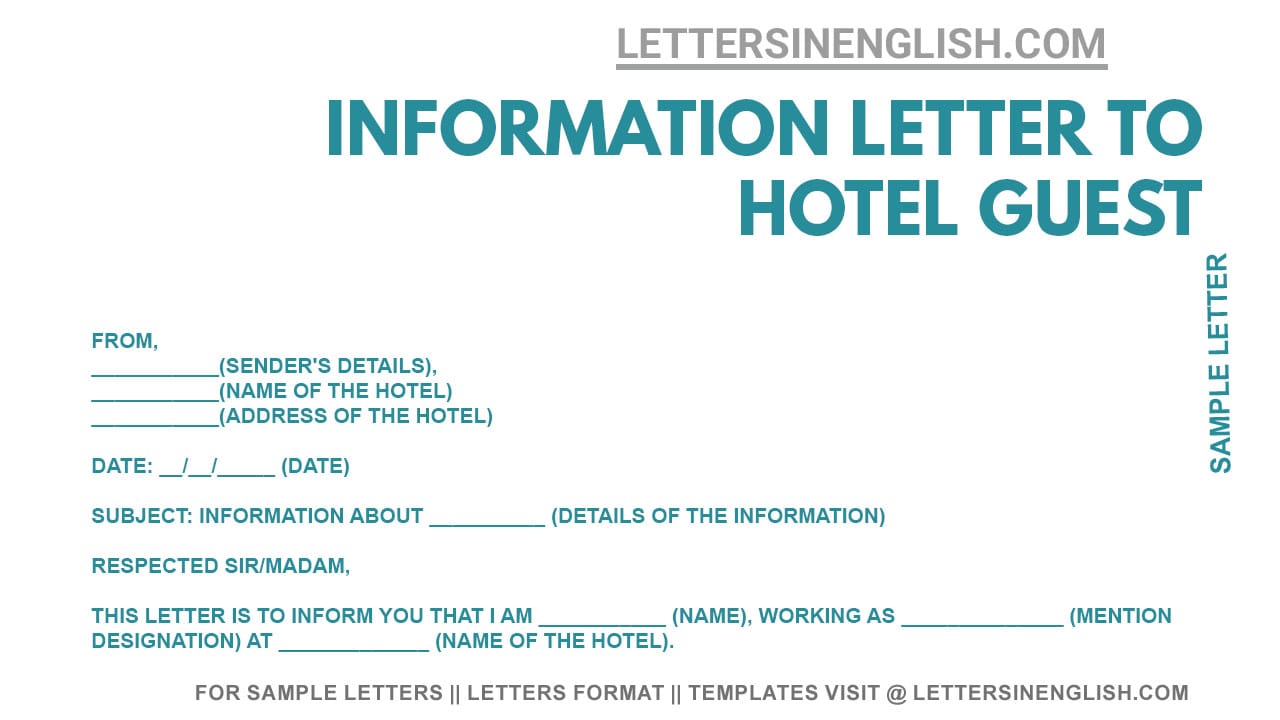 This letter is in reference to the booking ___________ (mention booking ID) of ______ (room) dated __/__/_____(date) under the name of _____________ (name of the guest). I am writing this letter to inform you that we have changed __________ (room number/booking/time of check in/check out) due to ___________ (mention reason).