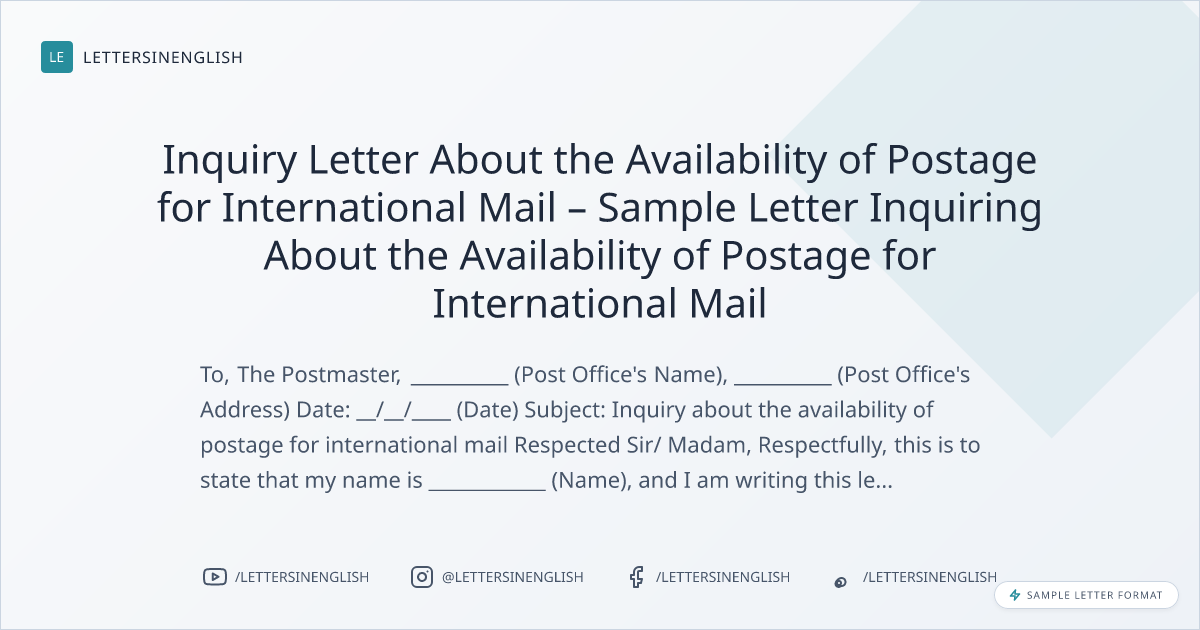 Inquiry Letter About the Availability of Postage for International Mail – Sample Letter Inquiring About the Availability of Postage for International Mail