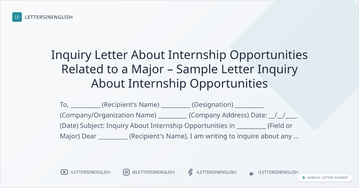 Inquiry Letter About Internship Opportunities – Sample Request for Internship Information
