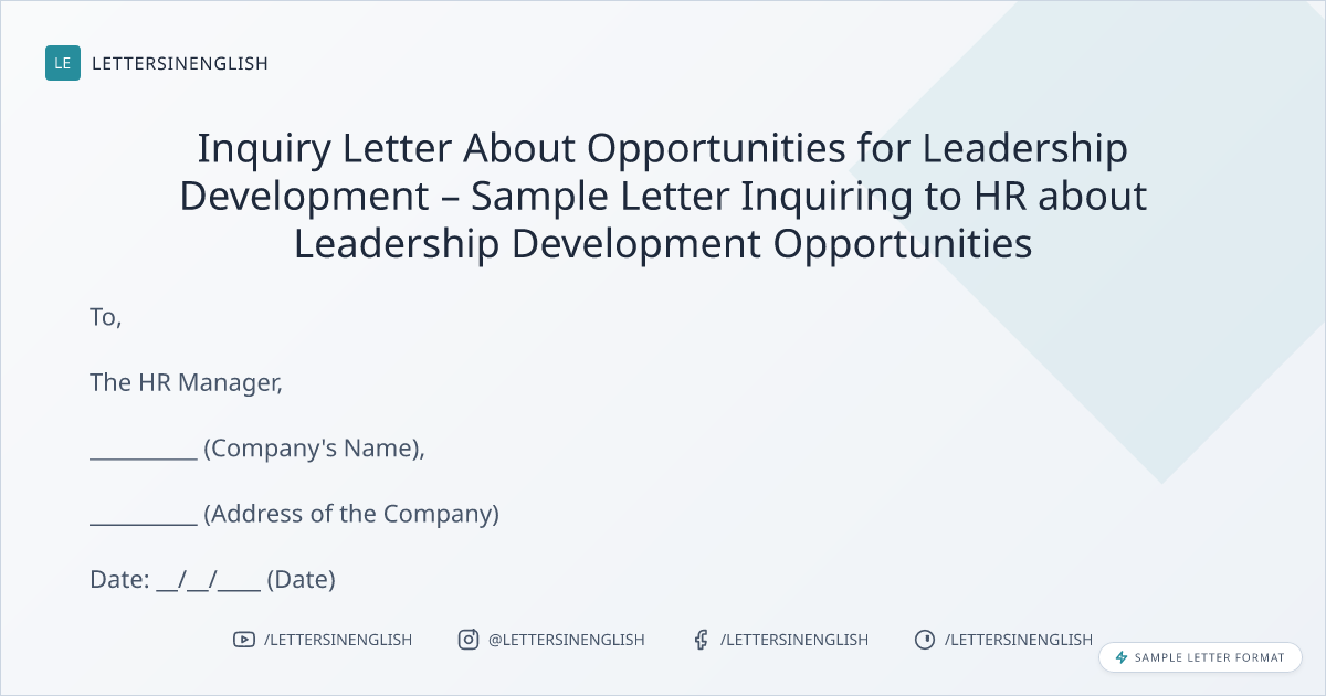 Inquiry Letter About Opportunities for Leadership Development – Sample Letter Inquiring to HR about Leadership Development Opportunities