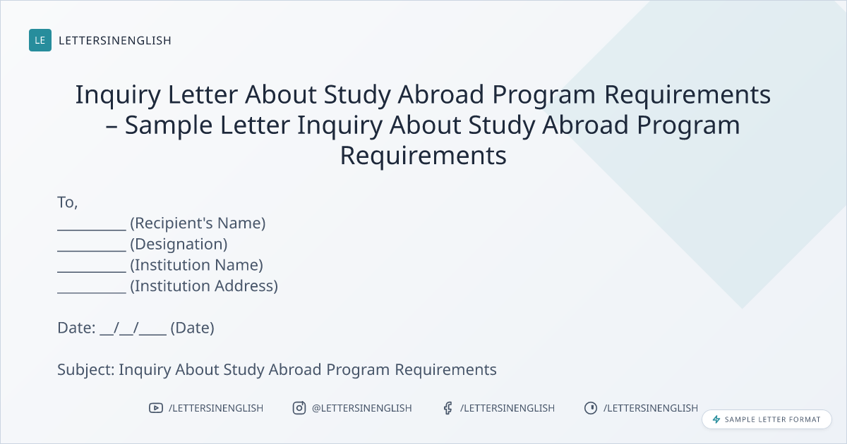 Inquiry Letter About Study Abroad Program Requirements – Sample Letter for Requesting Study Abroad Details
