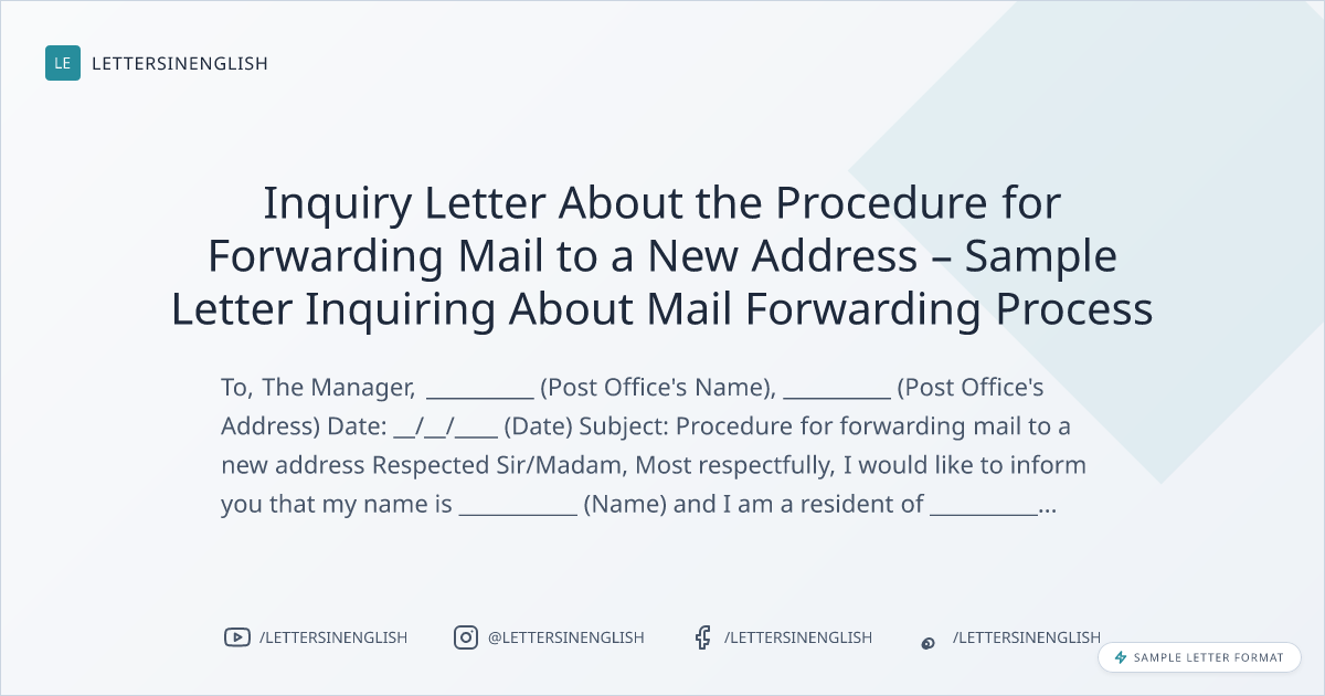 Inquiry Letter About the Procedure for Forwarding Mail to a New Address – Sample Letter Inquiring About Mail Forwarding Process