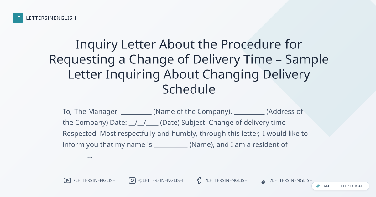 Inquiry Letter About the Procedure for Requesting a Change of Delivery Time – Sample Letter Inquiring About Changing Delivery Schedule