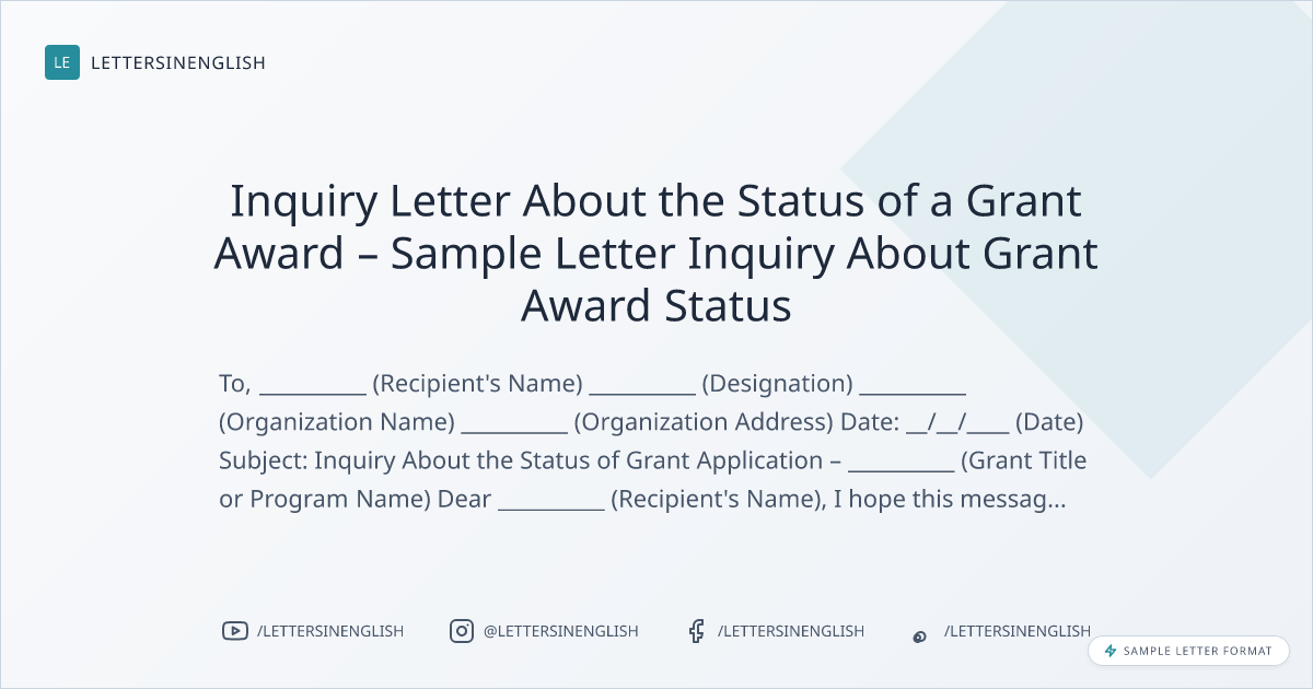 Inquiry Letter About the Status of a Grant Award – Sample Letter Inquiry About Grant Award Status