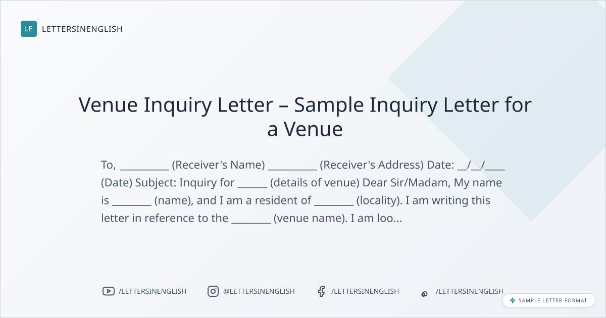 Venue Inquiry Letter – Sample Inquiry Letter for a Venue