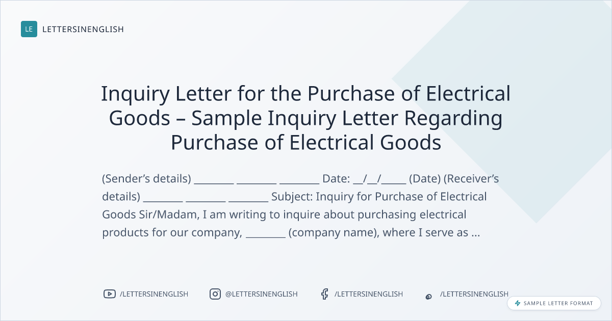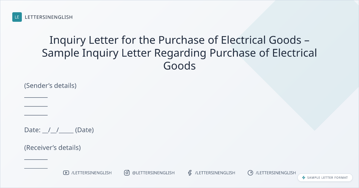 Inquiry Letter for the Purchase of Electrical Goods – Sample Inquiry Letter Regarding Purchase of Electrical Goods