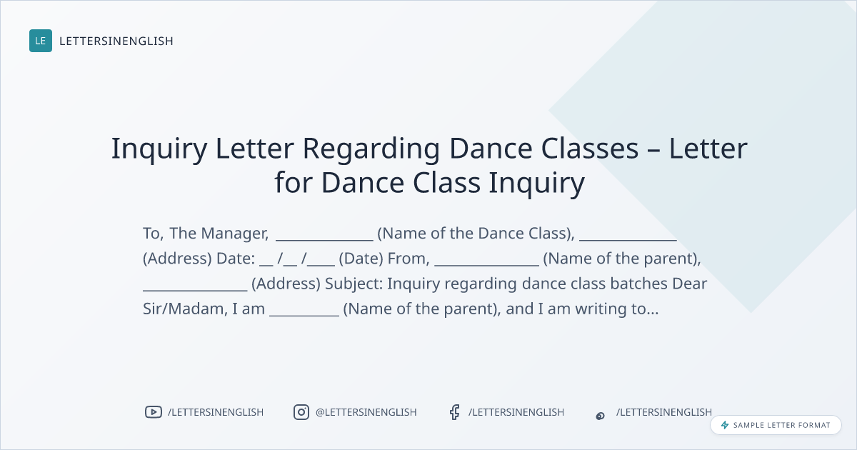 Inquiry Letter Regarding Dance Classes – Letter for Dance Class Inquiry