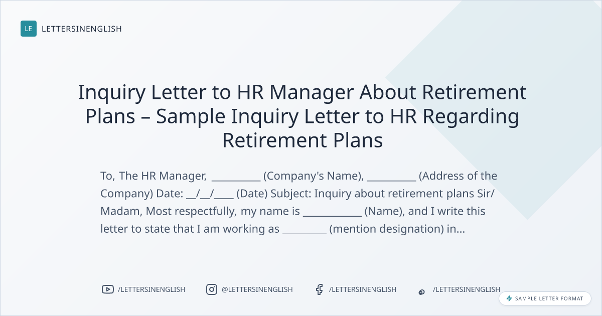 Inquiry Letter to HR Manager About Retirement Plans – Sample Inquiry Letter to HR Regarding Retirement Plans