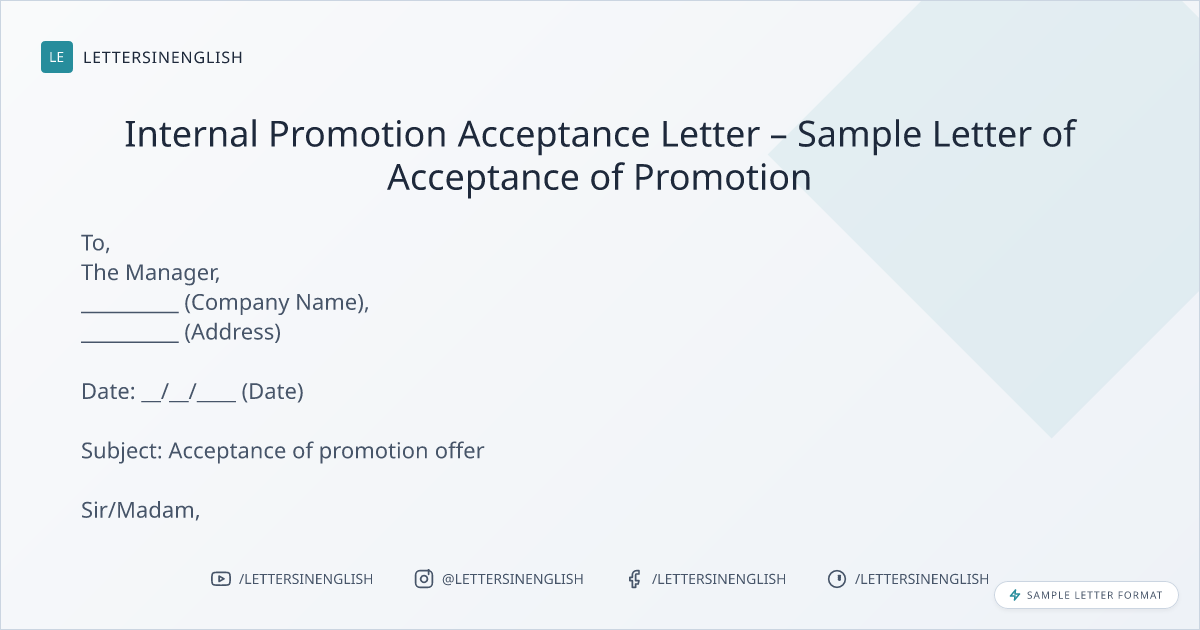 Internal Promotion Acceptance Letter – Sample Letter of Acceptance of Promotion