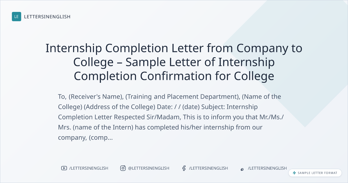 Internship Completion Letter from Company to College – Sample Letter of Internship Completion Confirmation for College