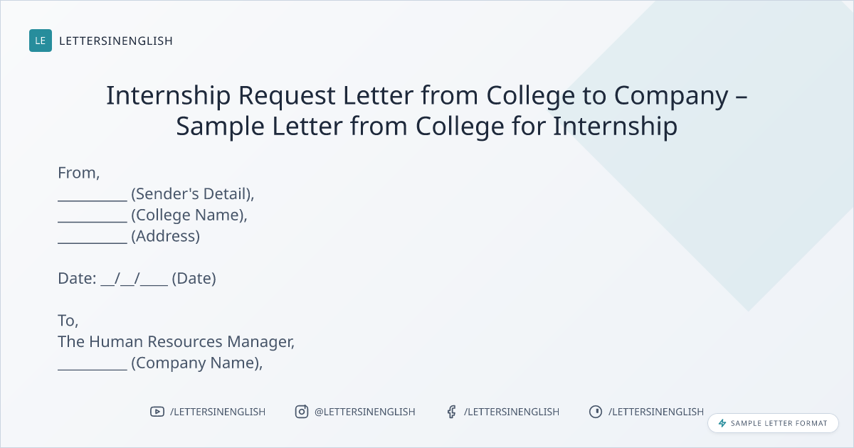 Internship Request Letter from College to Company – Sample Letter from College for Internship