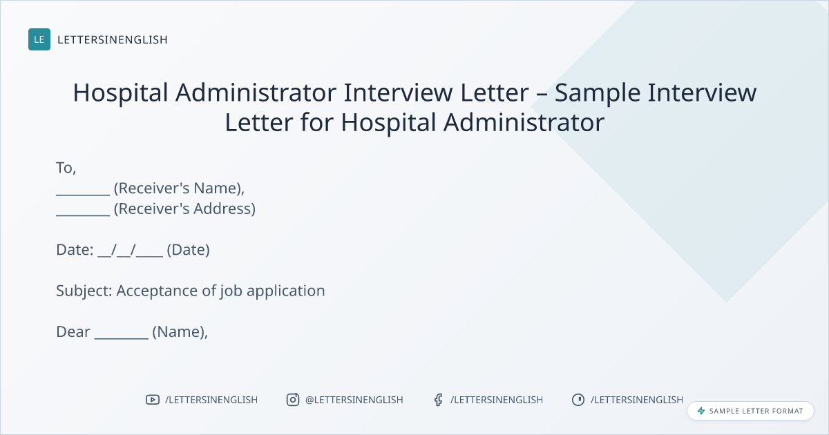 Hospital Administrator Interview Letter – Sample Interview Letter for Hospital Administrator