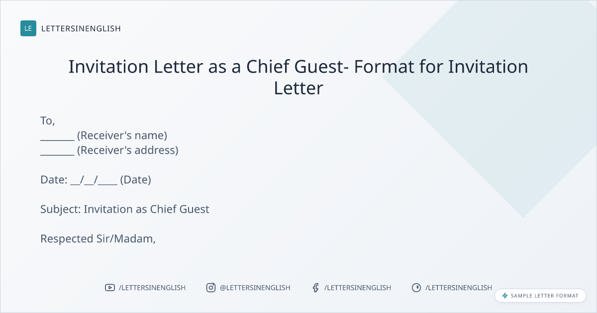 Invitation Letter as a Chief Guest- Format for Invitation Letter