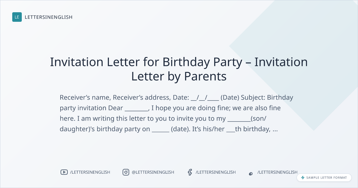 Invitation Letter for Birthday Party – Invitation Letter by Parents