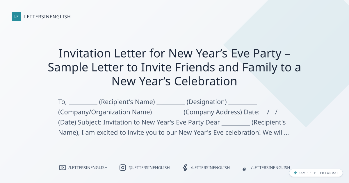 Invitation Letter for New Year's Eve Celebration - Sample Letter to Invite Friends and Family to Ring in the New Year