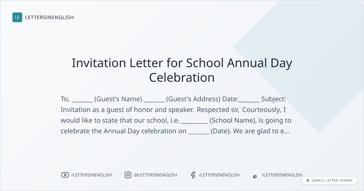 Invitation Letter to School Annual Day Celebration as Guest of Honor and Speaker