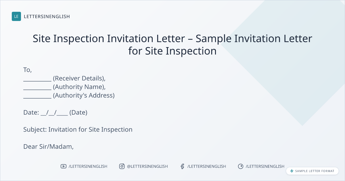Site Inspection Invitation Letter – Sample Invitation Letter for Site Inspection