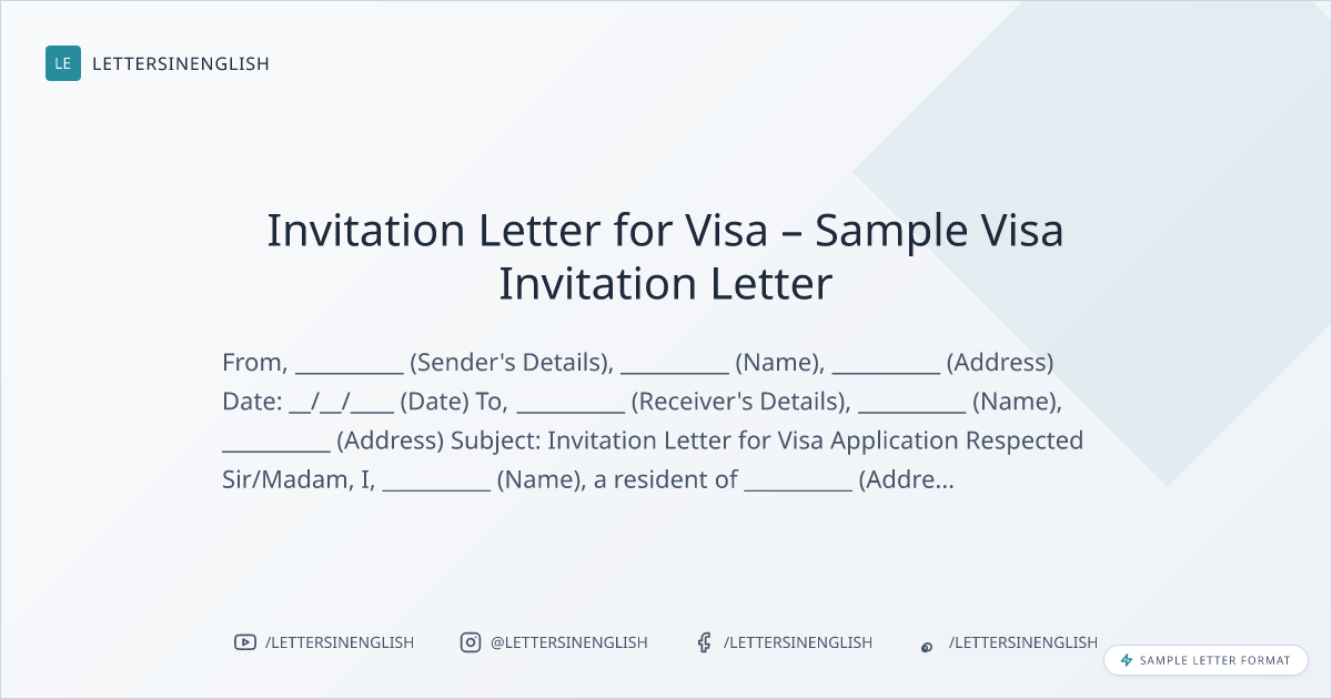 Invitation Letter for Visa – Sample Visa Invitation Letter