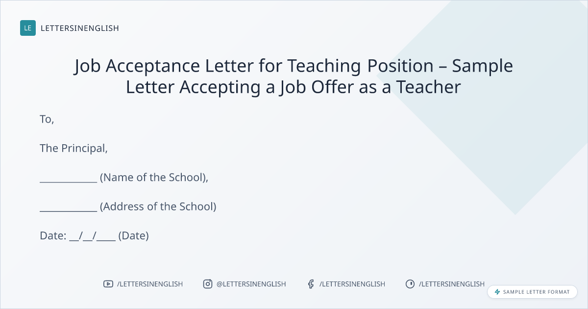 Job Acceptance Letter for Teaching Position – Sample Letter Accepting a Job Offer as a Teacher