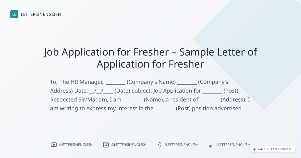 Job Application for Fresher – Sample Letter of Application for Fresher
