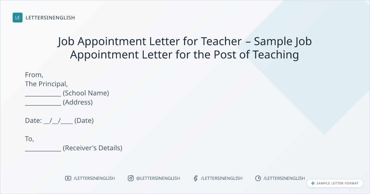 Job Appointment Letter for Teacher – Sample Job Appointment Letter for the Post of Teaching