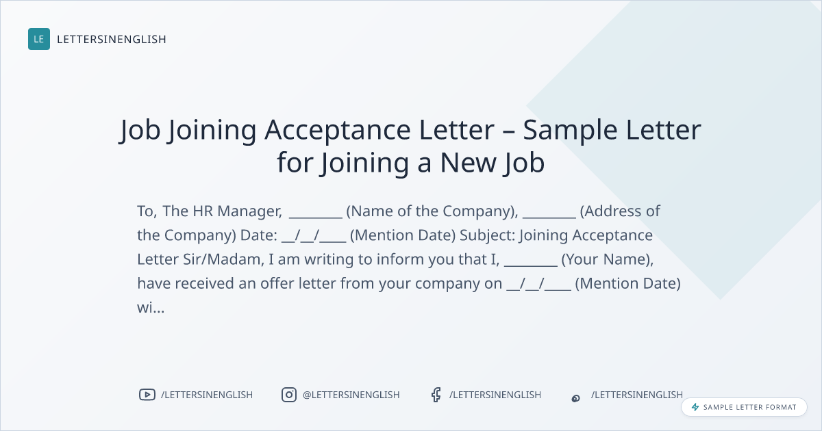 Job Joining Acceptance Letter – Sample Letter for Joining a New Job