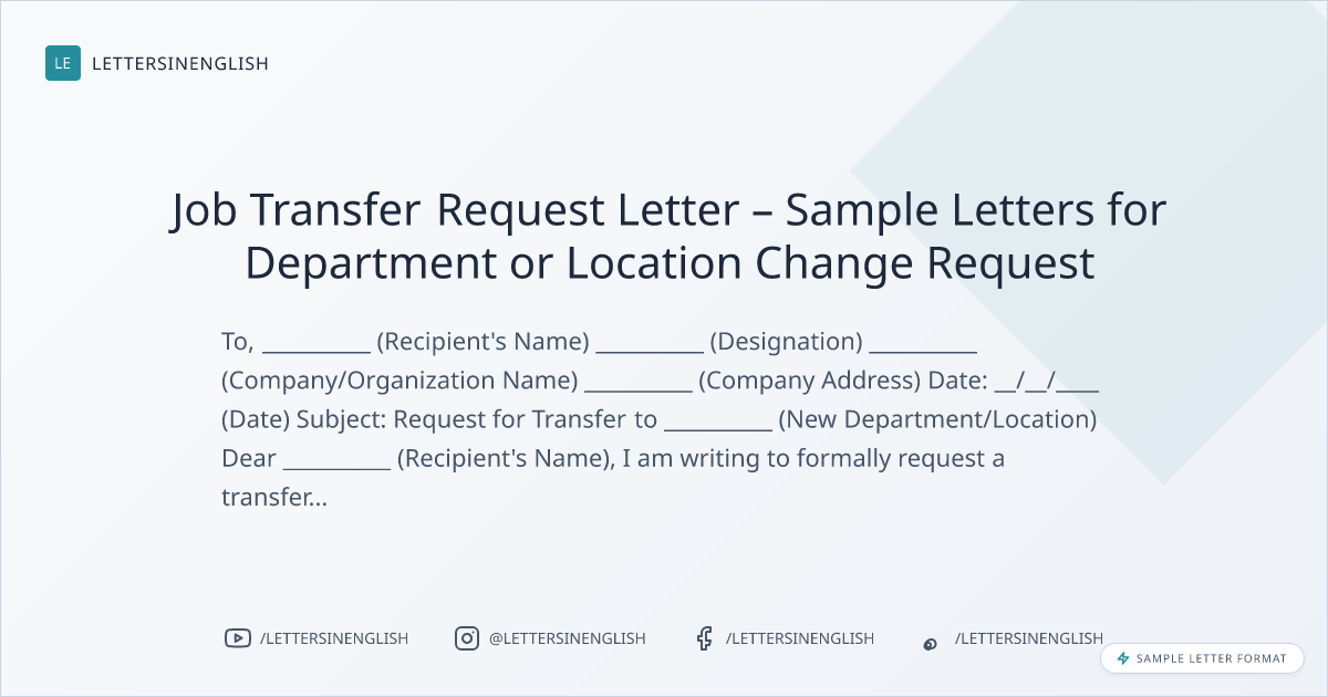 Job Transfer Request Letter – Sample Letters for Department or Location Change Request